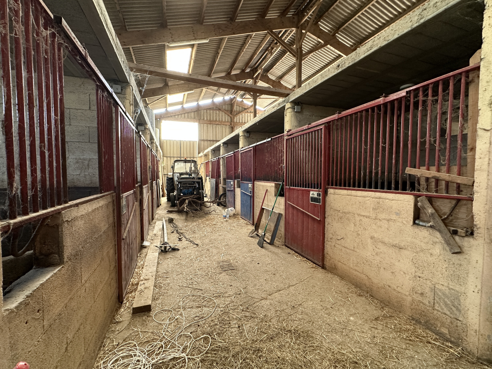 Un immense hangar abritant 28 boxes pour chevaux, parfaitement entretenus.