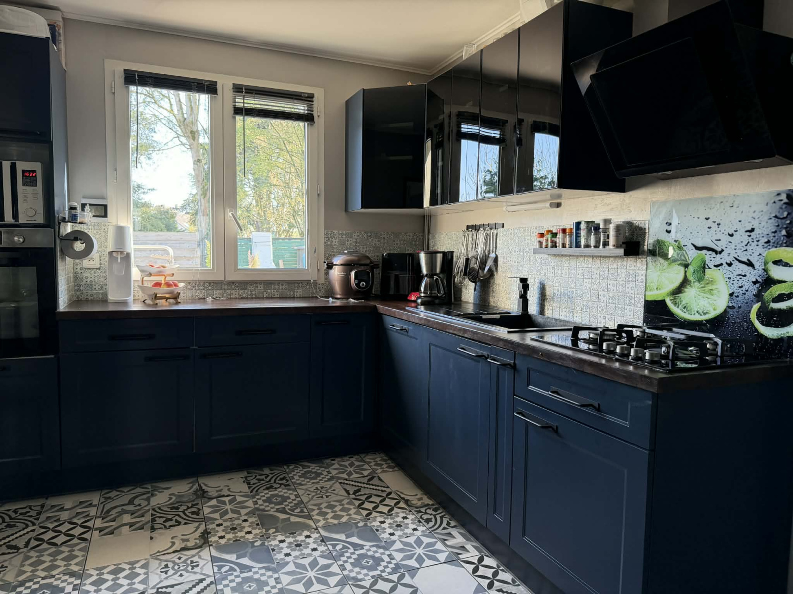Espace de Vie : Une pièce de vie lumineuse et traversante, donnant sur une cuisine moderne.