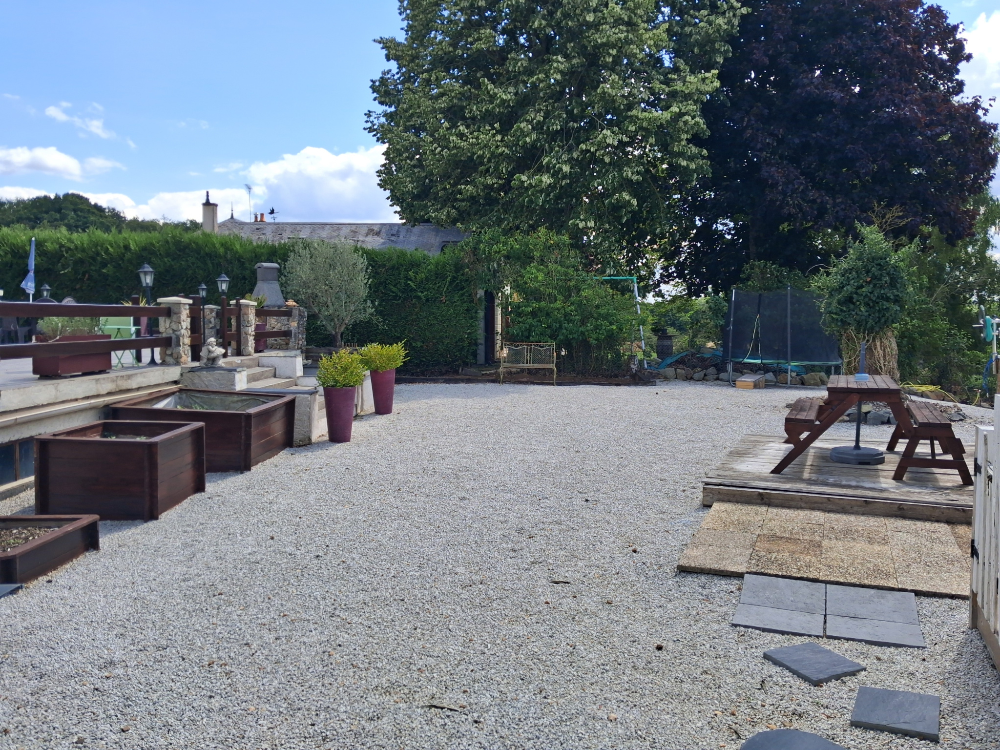 L’extérieur soigneusement aménagé s’étend sur un terrain de 2616 m², offrant un cadre verdoyant et ressourçant. Une vaste terrasse d'environs 77 m² permet de profiter pleinement des beaux jours, tandis qu’une piscine semi-enterrée et un terrain de pétanque apporte une touche de détente supplémentaire. Le garage accolé, avec une partie sous-sol, constitue un véritable atout pour le stationnement et le stockage.