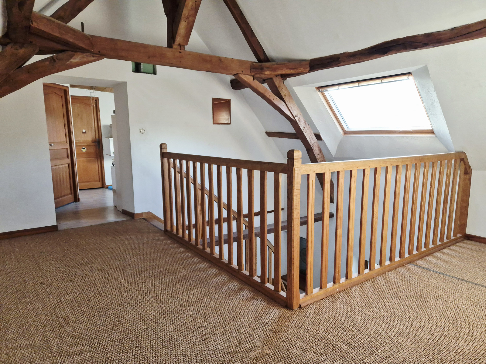 À l’étage, un palier dessert une belle mezzanine, deux chambres lumineuses, une salle d’eau et des toilettes. Le grenier, entièrement libre, offre un beau volume supplémentaire que chacun pourra transformer selon ses besoins : chambre, bureau, salle de jeux ou espace de stockage optimisé.